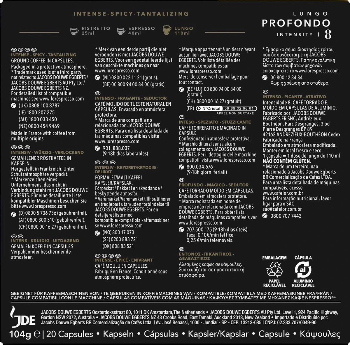 Lungo Profondo overtuigt je met zijn intens en kruidig aroma van geroosterde amandelen en uitdagend zoethout, afgerond met een glinsterende bronzen crรจmelaag.