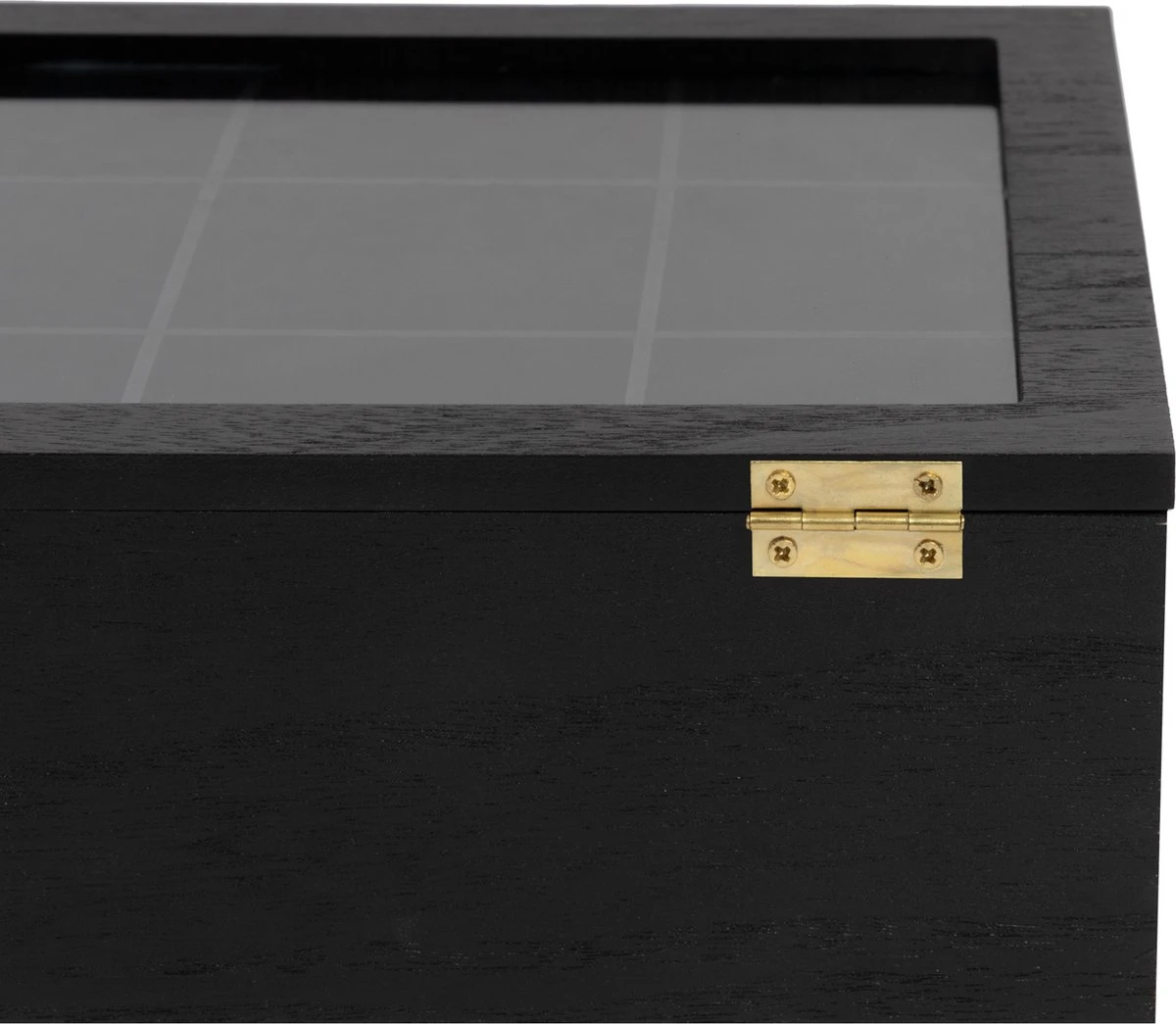 Theekist – Zwart – Hout 9-Vaks – Glazen Deksel – Theedoos