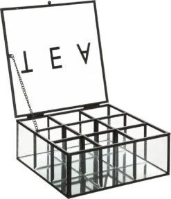 Theedoos/theekist Industrieel Zwart 9-vaks 18,5 X 17,5 Cm Van Glas/metaal – Theezakjes Doos/kist