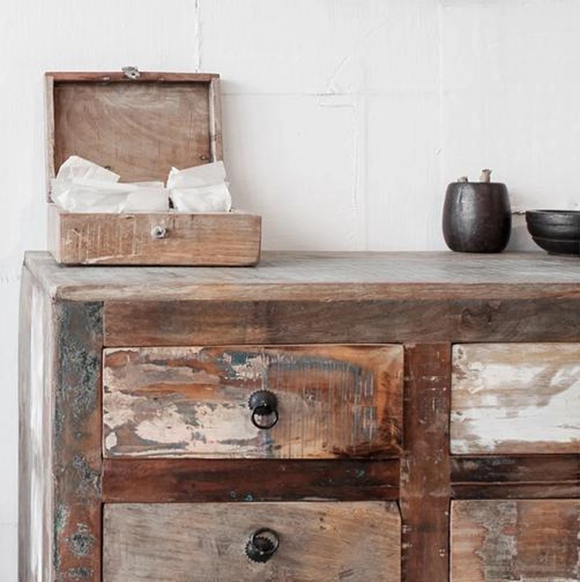 Het Scrapwood hout is afkomstig van gesloopte huizen uit Zuidwest India. Wij geven het een tweede leven door het te gebruiken in onze Scrapwood collectie en streven ernaar om het gerecyclede, oude hout, in haar originele staat te verwerken. Dit betekent dat het hout zijn originele kleur behoudt. Elk stuk van deze collectie is hierdoor uniek te noemen.