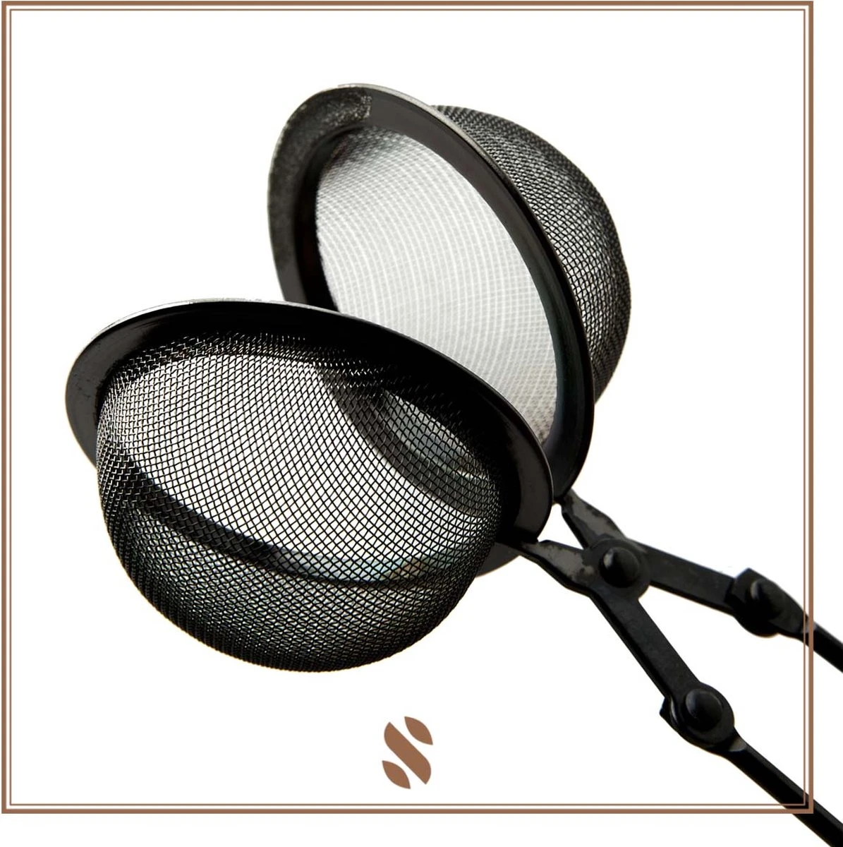 Deze trendy zwarte RVS theezeef knijper is ideaal om met losse thee een kop thee te zetten en handig om mee te nemen.